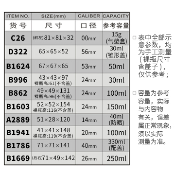 C26-15G/D322-30ML/B1624-50ML/B996-30ML/B862-100ML/B1603-150ML/B1941-100ML/A2889-40ML/B1786-330ML/B1669-250ML