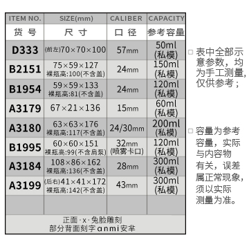 D333-50ML/B2151-150ML/B1954-120ML/A3179-60ML/A3180-200ML/B1995-120ML/A3184-300ML/A3199-300ML