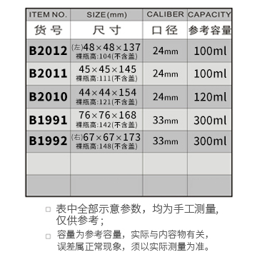 B2012-100ML/B2011-100ML/B2010-120ML/B1991-300ML/B1992-300ML