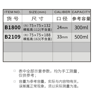 B1800-300ML/B2109-500ML