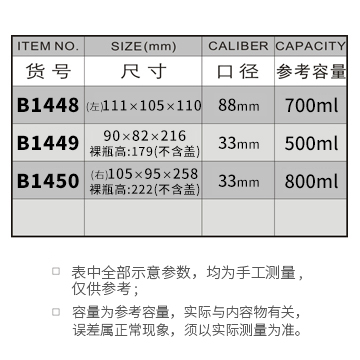 B1448-700ML/B1449-500ML/B1450-800ML