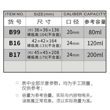 B99-80ML/B16-120ML/B17-200ML