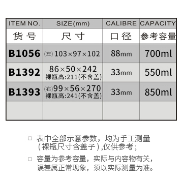 B1056-700ML/B1392-550ML/B1393-850ML
