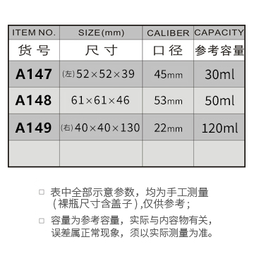 A147-30ML/A148-50ML/A149-120ML
