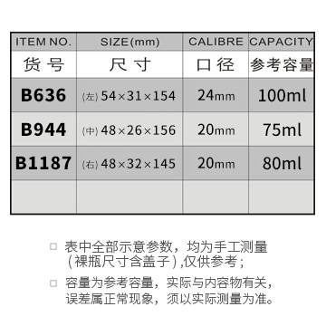 B636-100ML/B944-75ML/B1187-80ML