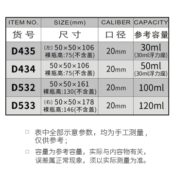 D435-30ML/D434-50ML/D532-100ML/D533-120ML