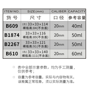 B609-40ML/B1874-50ML/B2267-50ML/B610-60ML
