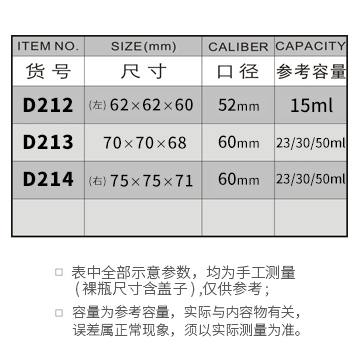 D212-15ML/D213-23ML/30ML/50ML/D214-23ML/30ML/50ML