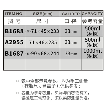 B1688-500ML/A2955-500ML/B1687-1000ML