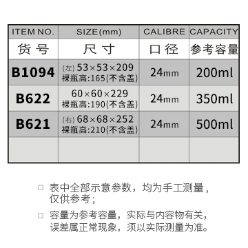B621-500ML/B622-350ML/B1094-200ML