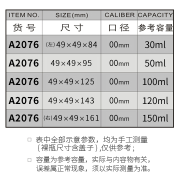 A2076-30ML/50ML/100ML/120ML/150ML