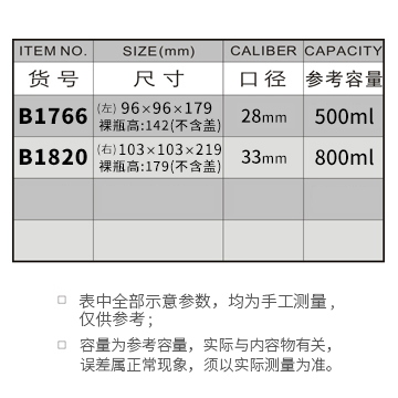 B1766-500ML/B1820-800ML