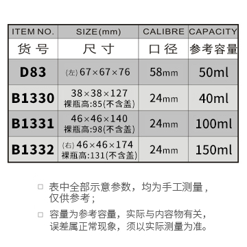 D83-50ML/B1330-40ML/B1331-100ML/B1332-150ML