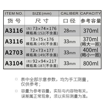 A3116-370ML(28牙)/A3116-370ML(33牙)/A2703-400ML/A3104-800ML