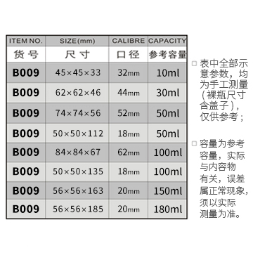 B009-10ML/B009- 30ML/B009-50ML/B009-100ML/B009-150ML/B009-180ML