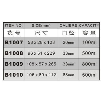 B1007-100ML/B1008-500ML/B1009-800ML/B1010-500ML