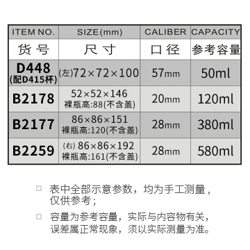 D448-50ML(配D415杯)/B2178-120ML/B2177-380ML/B2259-580ML