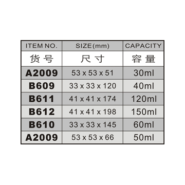 A2009-30ML/B609-40ML/B611-120ML/B612-150ML/B610-60ML/A2009-50ML