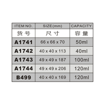 A1741-50ML/A1742-40ML/A1743-100ML/A1744-120ML/B499-120ML