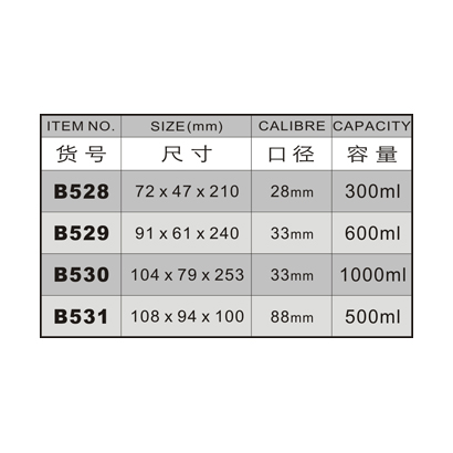 B528-300ML/B529-600ML/B530-1000ML/B531-500ML