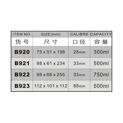 B920-300ML/B921-500ML/B922-750ML/B923-500ML