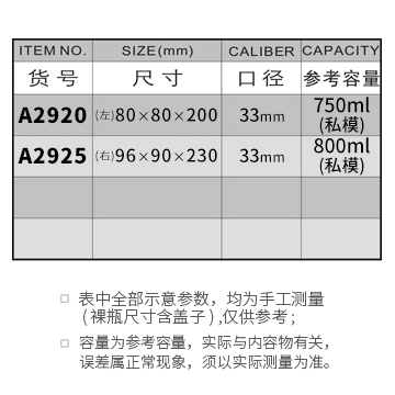 A2920-750ML(单瓶)/A2925-800ML(单瓶)