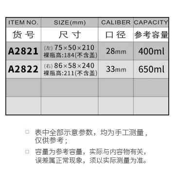 A2821-400ML/A2822-650ML
