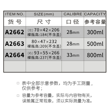 A2662-300ML/A2663-500ML/A2664-800ML