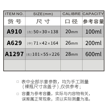 A910-100ML/A629-200ML/A1297-600ML