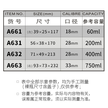 A661-60ML/A631-200ML/A632-400ML/A663-750ML