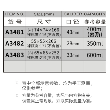 A3481-400ML/A3482-350ML/A3483-600ML