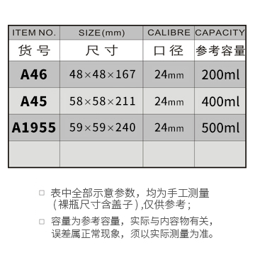 A46-200ML/A45-400ML/A1955-500ML