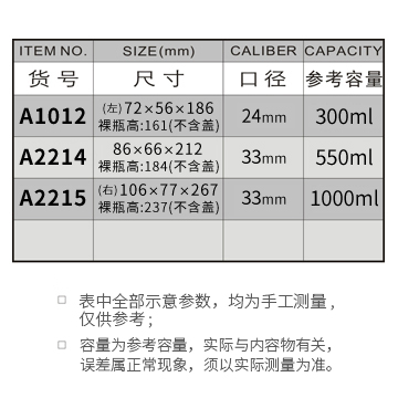 A1012-300ML/A2214-550ML/A2215-1000ML