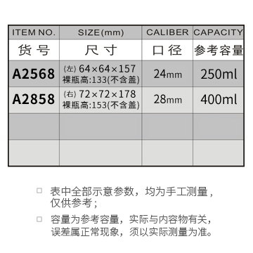 A2568-250ML/A2858-400ML
