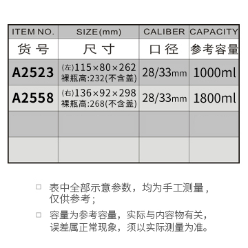 A2523-1000ML/A2558-1800ML