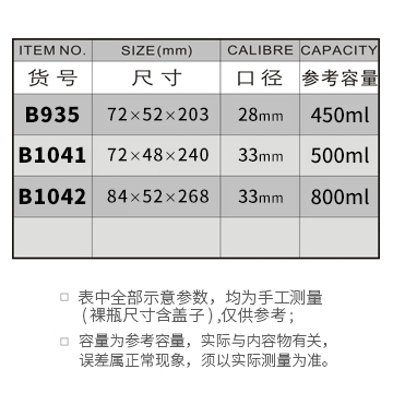 B935-450ML/B1041-500ML/B1042-800ML
