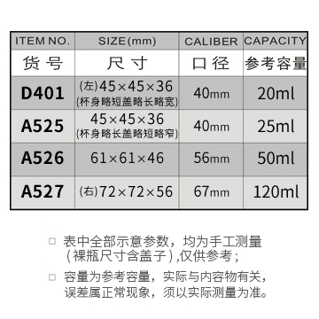 D401-20ML/A525-25ML/A526-50ML/A527-120ML