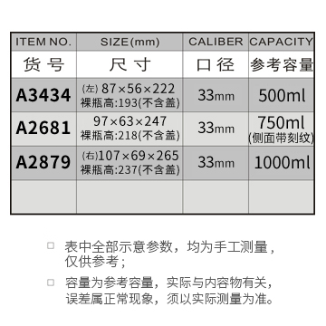 A3434-500ML/A2681-750ML/A2879-1000ML