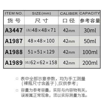 A3447-30ML/A1987-50ML/A1988-100ML/A1989-200ML