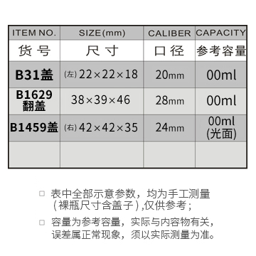 B31盖-20牙/B1629翻盖-28牙/B1459盖-24牙