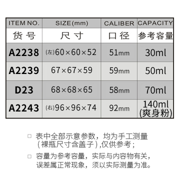 A2238-30ML/A2239-50ML/D23-70ML/A2243-140ML