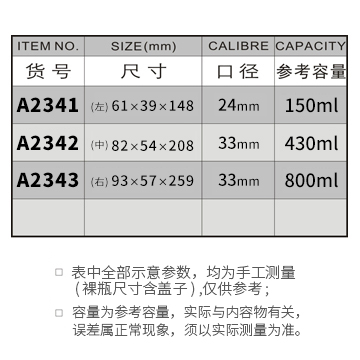 A2341-150ML/A2342-430ML/A2343-800ML