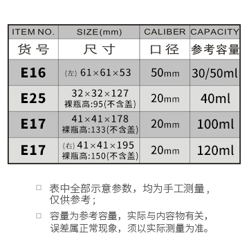 E16-30ML/50ML/E25-40ML/E17-100ML/120ML