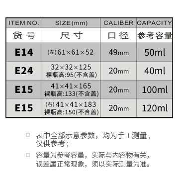 E24-40ML/E14-50ML/E15-100ML/E15-120ML