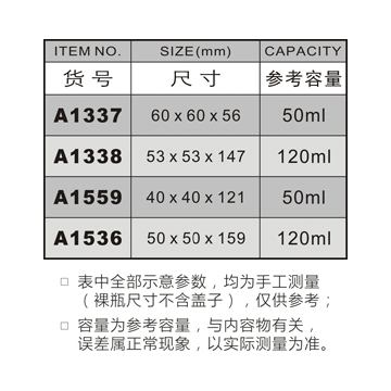 A1337-50ML/A1338-120ML/A1559-50ML/A1536-120ML