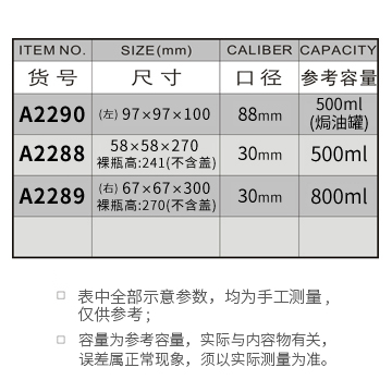 A2290-500ML/A2288-500ML/A2289-800ML