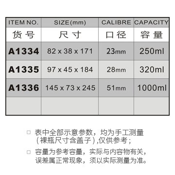 A1334-250ML/A1335-320ML/A1336-1000ML