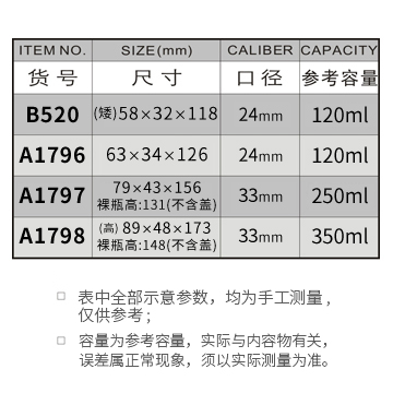B520-120ML/A1796-120ML/A1797-250ML/A1798-350ML