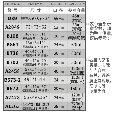 D89-48ML/A2049-55ML/B108-60ML/B861-60ML/B736-60ML/B702-80ML/A2458-120ML/B673-2-120ML/B672-160ML/A2428-120ML/A1263-320ML