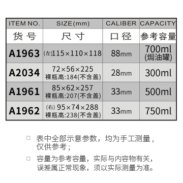 A1963-700ML/A2034-300ML/A1961-500ML/A1962-750ML